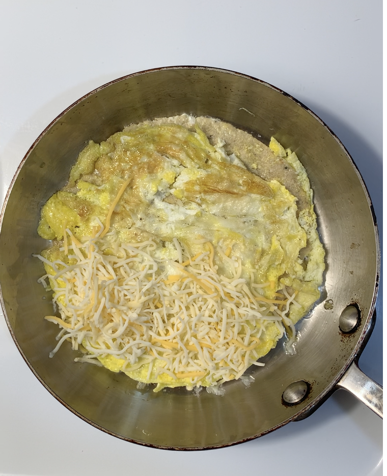 - Sprinkle shredded cheese on top and fold the Tortilla