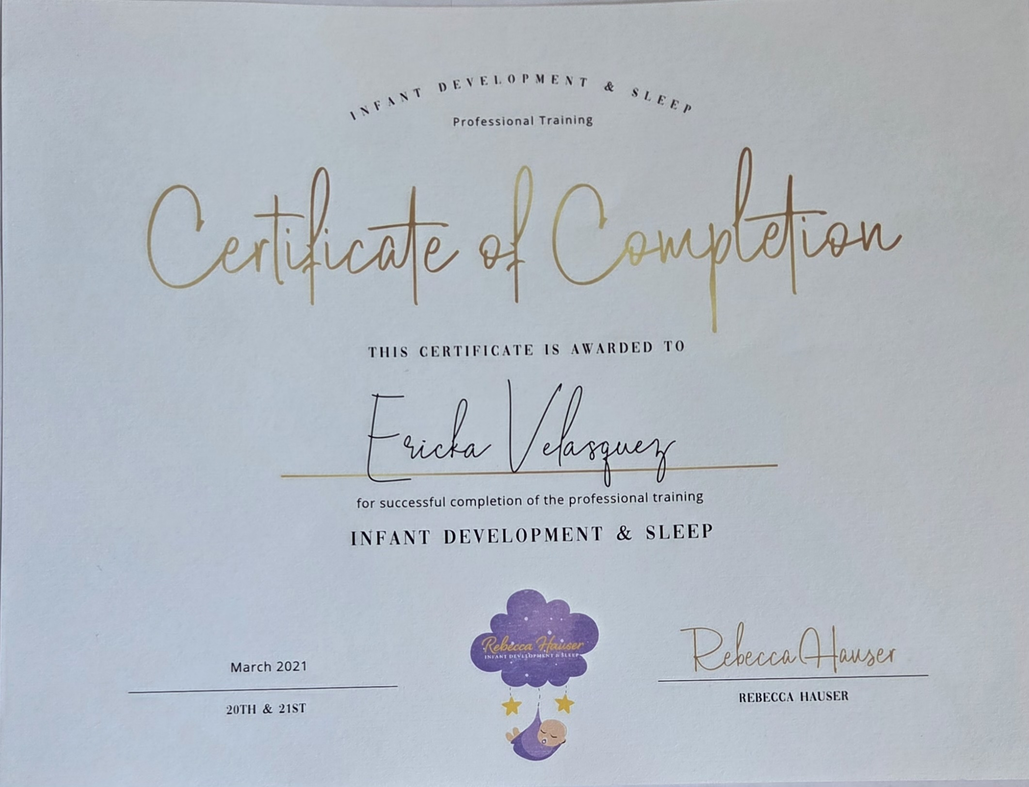 Certificate of Completion - INFANT DEVELOPMENT & SLEEP